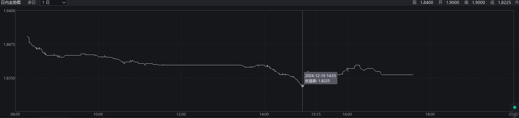 12月10日,国内债券市场持续活跃,长期国债ETF市场表现尤为亮眼,高开高走并全天大涨。据观察,10年期国债收益率在当日盘中持续走低,于下午15时左右跌至1.8225%,较此前2%以下的水平进一步下滑,且在收盘时接近1.84%,较前一日下降了6.5个BP。