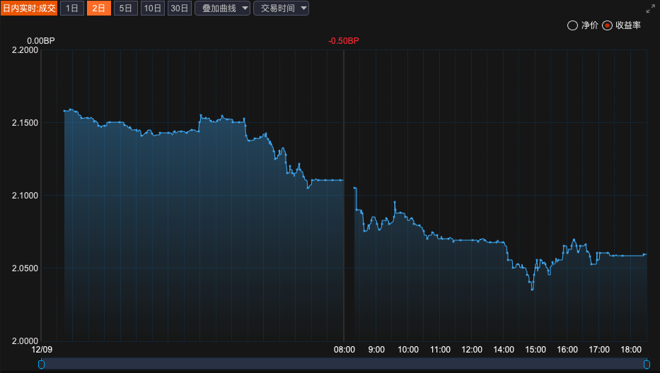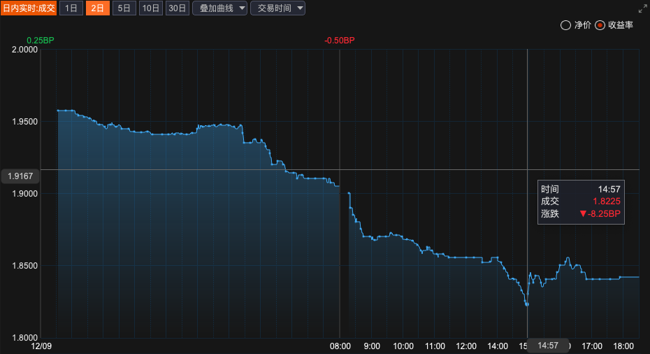 近2日10年期国债“24附息国债11”到期收益率走势图展示了这一显著变化。
