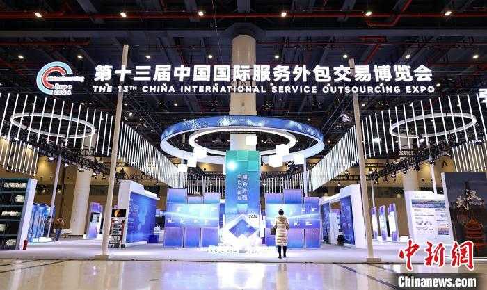 当日,中新社记者张畅摄下了这一盛况。服博会的举办不仅展示了中国服务外包产业的蓬勃发展,也彰显了中国在全球服务外包市场中的重要地位。