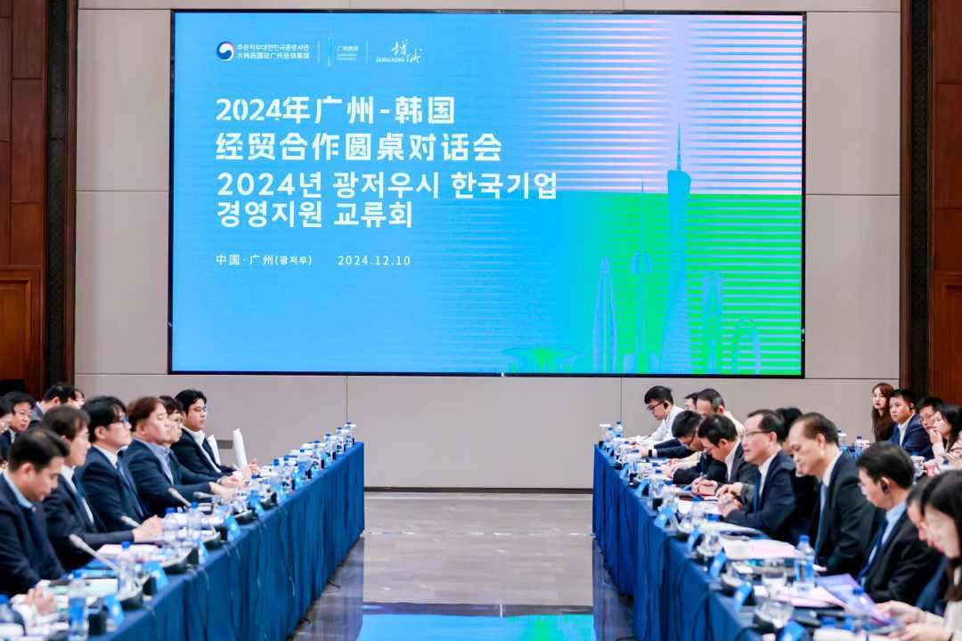 12月10日,2024年广州-韩国经贸合作圆桌对话活动在广州举行,双方企业代表共谋互利共赢新篇章,探讨产业合作前景,活动由广州市商务局等多个单位联合举办。
