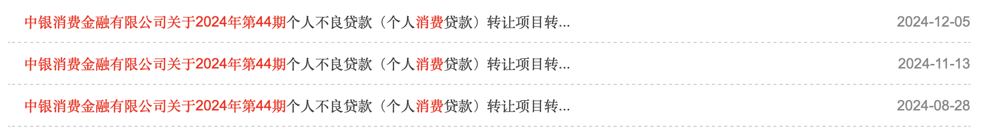 (中银消金第44期个贷资产包流拍情况)