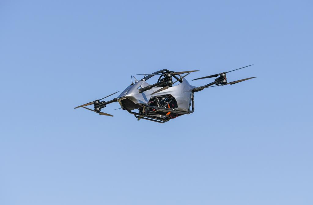 11月8日,在深圳市宝安区无人机系统应用测试基地,深圳市安特狗航天航空科技有限公司的载人飞行器正在进行飞行测试,标志着中国低空经济领域的技术创新和研发实力不断提升。