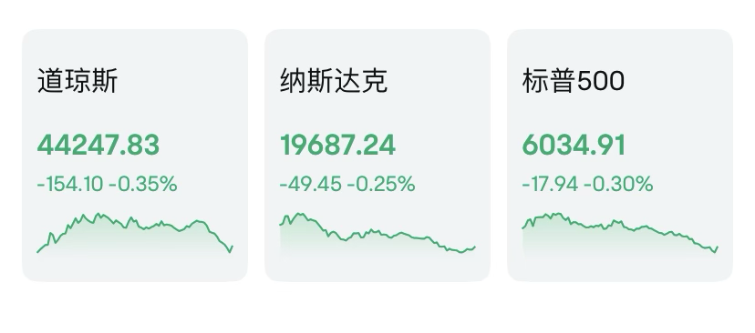 美东时间周二,美股市场经历波动,三大指数集体收跌。其中,道琼斯工业平均指数连续第四个交易日下跌,标普500指数和纳斯达克指数也分别遭遇两连跌。