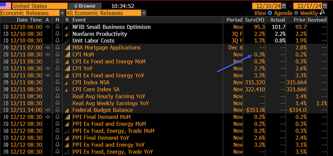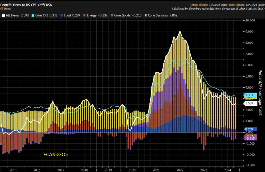 将北京时间今晚21:30出炉的美国11月CPI数据视为“2024年最后一份重量级的美国经济指标”,这一比喻恰如其分。尽管年底前还将发布另一关键通胀指数PCE数据,但相比之下,较晚出炉的PCE数据对市场的影响力往往难以与CPI相提并论。