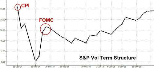 美股波动率期限结构显示,交易员在CPI和美联储决议前如临大敌,市场氛围紧张。
