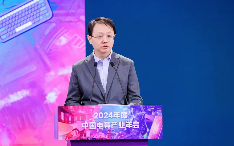 唐贾军在会上发布了《2024年中国电子竞技产业报告》。图|受访者供图