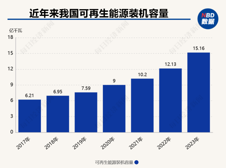截至2023年底,我国可再生能源发电装机达到15.16亿千瓦数据来源:国家能源局