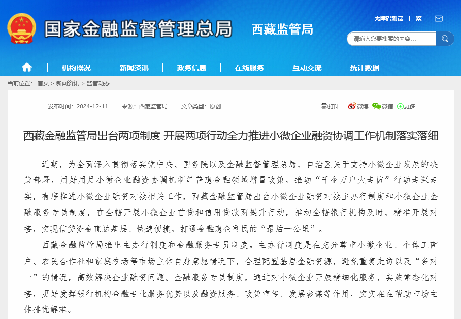 西藏、河北、云南、安徽等多地金融监管局近期出台多项措施,全力推进小微企业融资协调工作机制,包括推出制度、行动,加强信用信息挖掘运用,提高信用贷款发放效率,降低不动产抵押物依赖等,助力小微企业健康发展。