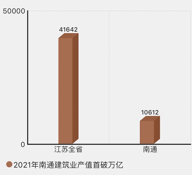 凭借包工队的模式起家,南通建筑企业在大基建和房地产的黄金时代迅速崛起,成为民营建筑行业的佼佼者。据江苏省住建厅数据,2021年江苏建筑业产值突破四万亿,南通建筑业产值更是首破万亿,一砖一瓦间铸就了“中国建筑看江苏,江苏建筑看南通”的辉煌。