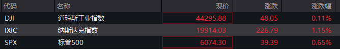在数据发布时,美股尚未开盘,但三大股指期货已出现短线拉升。随后,美股三大指数均高开,纳指和标普500指数涨幅持续扩大。截至发稿,道指微涨0.11%,纳指则强劲上涨1.15%,标普500指数也上涨了0.65%。