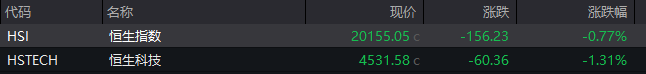 港股两大股指盘中震荡回落,尾盘加速下行,恒生科技指数一度跌近2%。截至收盘,恒生指数跌0.77%,恒生科技指数跌1.31%。个股方面,哔哩哔哩跌逾5%,同程旅行跌超4%;海底捞、新奥能源涨超2%。