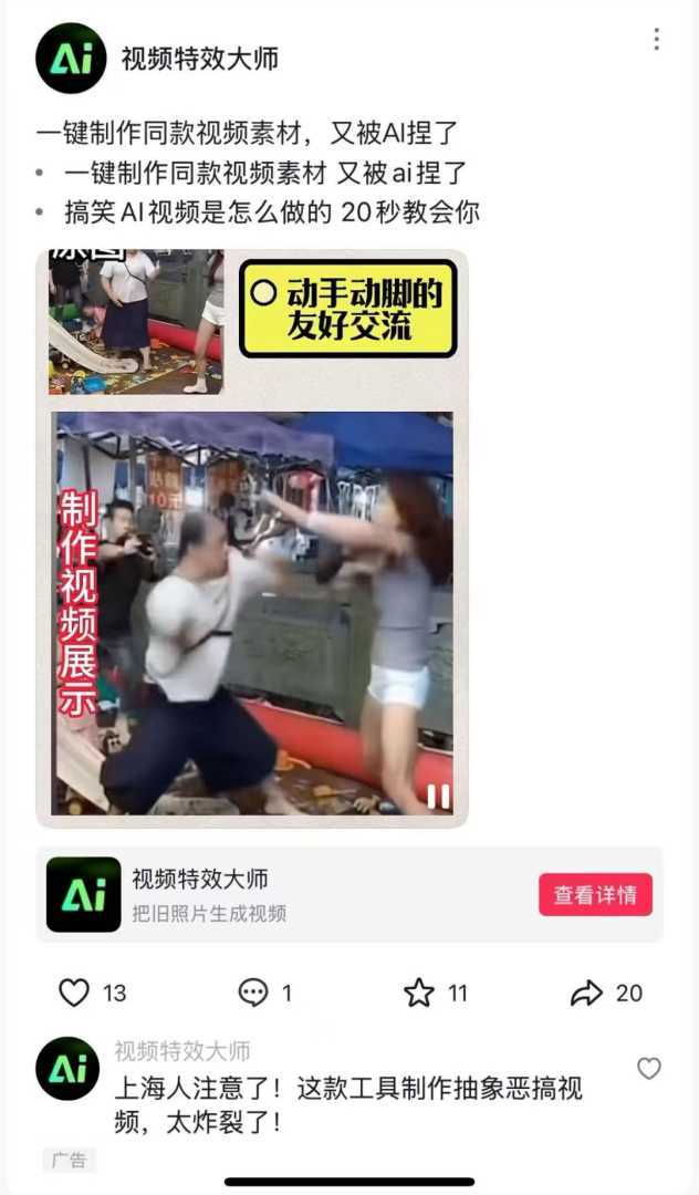 有用户反映,目前生成这类视频的门槛并不高,市面上已有大量相关软件,用户只需在软件中输入描述词即可生成视频。然而,要想让AI视频更加逼真无破绽,还需反复调整描述词,如指定人物使用哪只手做什么动作、人物拿枪瞄准射击时是左眼还是右眼闭眼等。