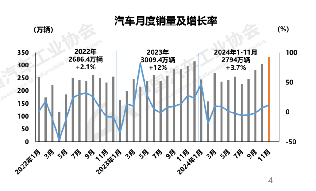 中汽协负责人预计,随着政策累积效应的逐步显现,各地及企业的促销活动将持续发力,加上年底冲刺因素的影响,12月汽车市场有望继续保持良好势头。预计2024年全年汽车产销将保持在3000万辆以上的规模。同时,2025年的政策环境依然有利于汽车行业的健康发展,中汽协呼吁相关促汽车消费政策能够延续并尽早出台。