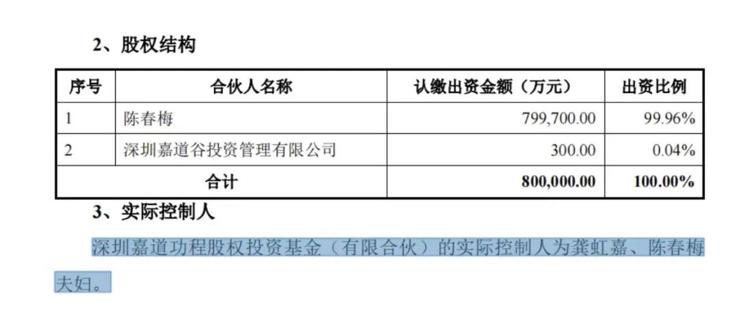 值得注意的是,嘉道功程的实际控制人为龚虹嘉、陈春梅夫妇,他们不仅是知名企业家和投资人,还是安防巨头海康威视的早期投资人及第二大股东,同时还实际控制另一家上市公司中源协和。2024年,龚虹嘉和陈春梅夫妇以655亿元财富位列《2024胡润全球富豪榜》第257位。
