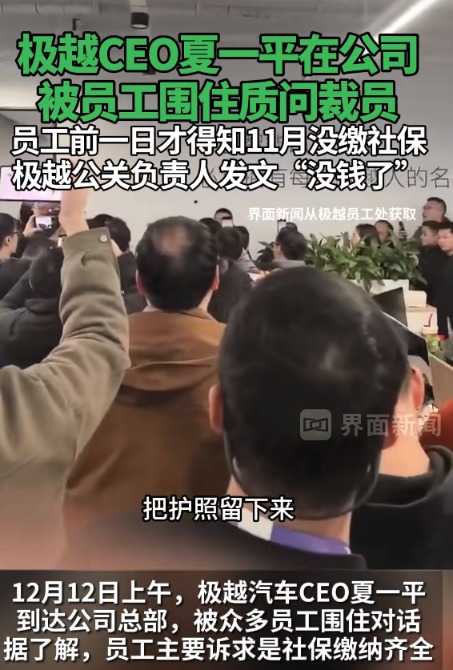 同日,极越CEO夏一平在公司总部被众多员工围堵,现场情况被内部员工直播。