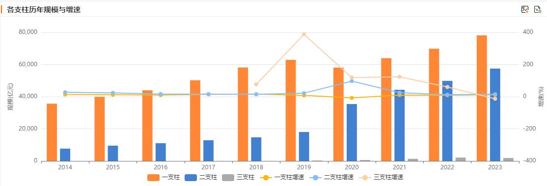 在第一支柱方面,截至10月底,城镇职工基本养老保险参保人数达53415万人,基金收入60115亿元,支出55894亿元;城乡居民基本养老保险参保人数达54145万人,基金收入5529亿元,支出5326亿元。