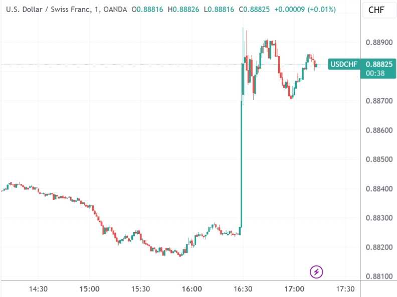 多数经济学家此前仅预期瑞士央行降息25个基点,因此这一决定对市场产生了显著影响,美元兑瑞郎、欧元兑瑞郎均出现短线60个基点的拉升。