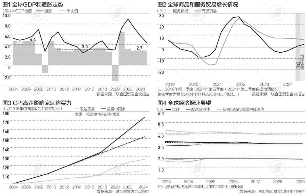 联合国贸发组织(UNCTAD)在《2024全球贸易与发展报告》中预测,2024年和2025年的全球经济增速将放缓至2.7%,远低于2001年至2019年的年均3%的增长率。这一预测揭示出全球经济正步入“低增速常态”。