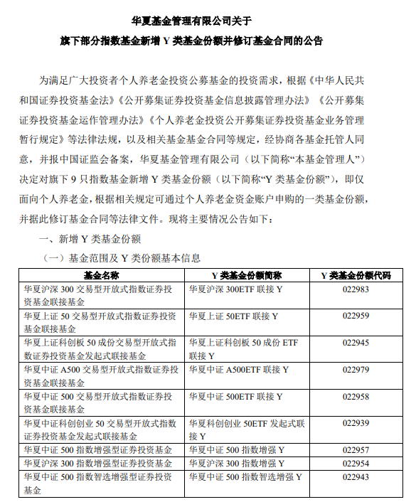 【导读】近日,易方达、华夏、富国等基金公司宣布,旗下指数基金增设Y份额,以纳入个人养老金基金。