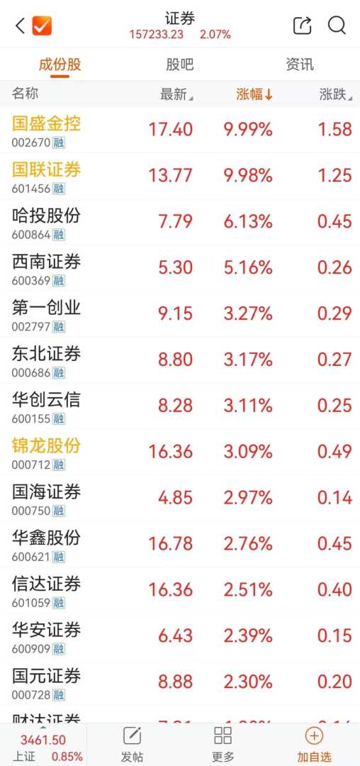 国盛金控证券板块领涨 三连板