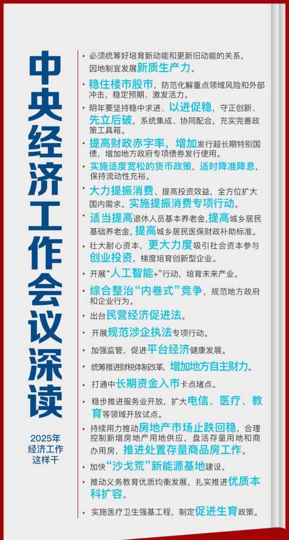 中央经济工作会议部署2025年经济工作,明确八大政策导向