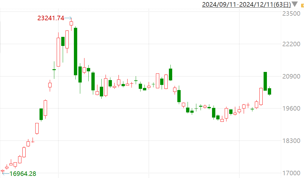 然而,港股的涨势并未持续,12月10日及11日,恒生指数均呈现高开低走的态势。直至12月12日,恒生指数才再次回暖收涨。
