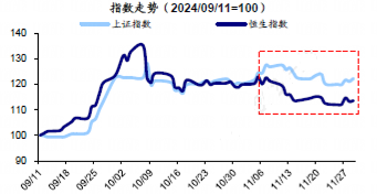 然而,国庆假期后,港股回调速度及深度均大于A股。由于前期上涨过快,港股自10月8日开始回调,而A股则在10月9日开启调整。特别是在美国大选结果公布后,港股与A股走势出现分化,港股加速下跌。