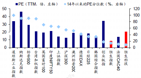 国际对比视角下,港股估值也处于低位。Wind数据显示,截至今年11月底,恒生指数PE处于2014年以来的14%分位数,明显低于全球其他主要股指。