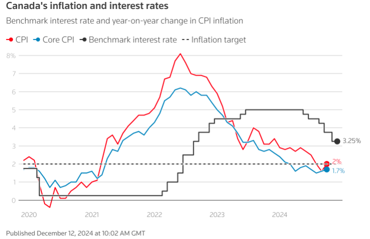加拿大央行:降息50个基点至3.25%,市场对加拿大央行下个月降息25个基点的概率押注高达70%。
