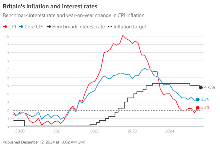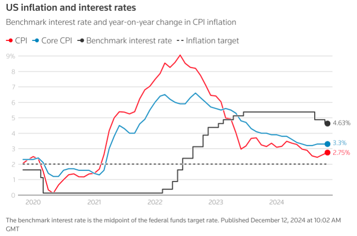 美联储:鉴于经济强劲和特朗普政策使通胀前景复杂化,美联储谨慎宽松。交易员预计下周还会降息25个基点,但明年降息空间可能受限。