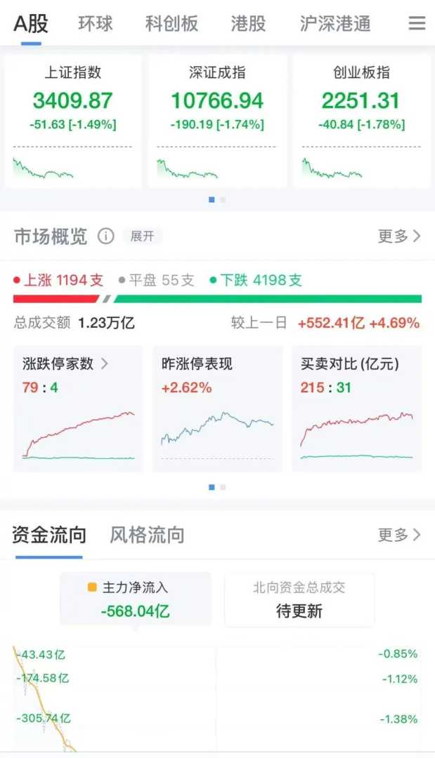 截至午盘,沪指下跌1.49%,报3409.87点;深成指下跌1.74%,报10766.94点;创业板指下跌1.78%,报2251.31点。