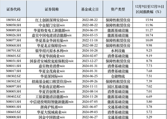 表:12月9日至16日,涨幅累计超过5%的公募REITs名单。