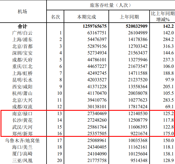 2023年机场旅客吞吐量及排名图片来源:民航局网站