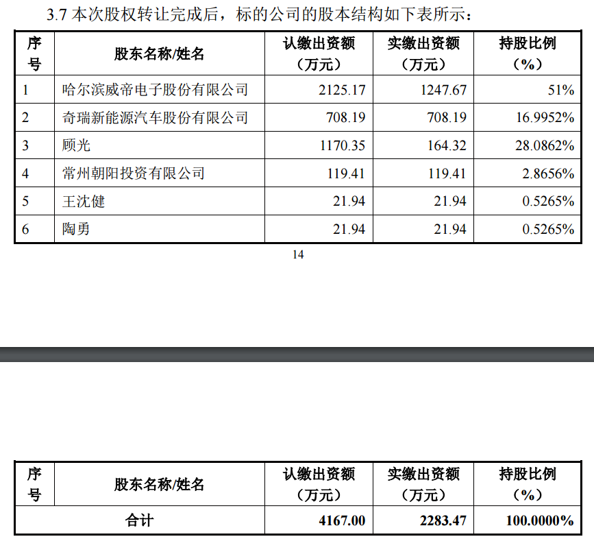 通过此次交易,*ST威帝将拓展奇瑞汽车的业务合作机会,进一步巩固和扩大在乘用车领域的市场份额。作为汽车电子控制产品供应商,*ST威帝的主要目标市场此前为大中型客车市场及新能源卡车市场。