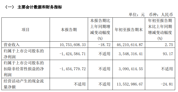 然而,*ST威帝2024年第三季度业绩显示,公司实现营业收入1075.36万元,同比下降18.72%;归母净利润和扣非后净利润分别为-142.46万元和-145.48万元。