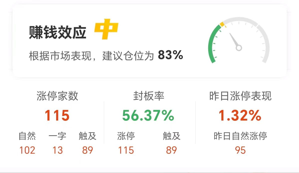 涨停个股方面,市场活跃度保持较高水平,截至收盘共有115只个股涨停,另有89只个股盘中一度触及涨停,整体封板率为56.37%。