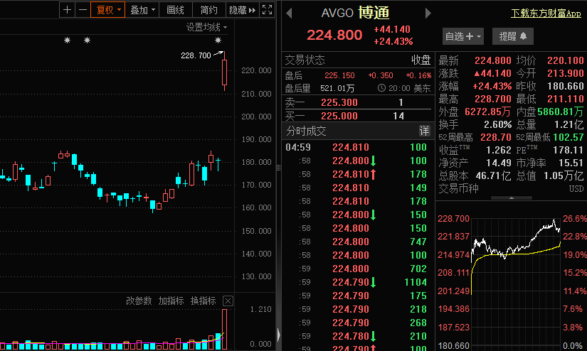 AI赛道竞赛持续升温,博通凭借AI业务强劲增长股价飙升,字节跳动将在上海举行的原动力大会上展示全新的豆包大模型,相关概念股备受市场关注,多只股票表现强劲。