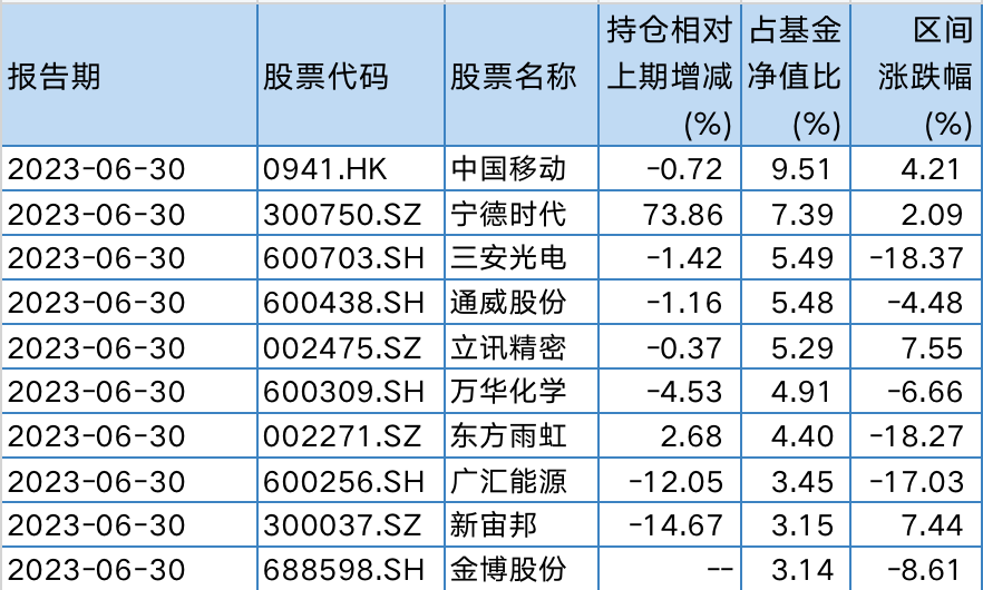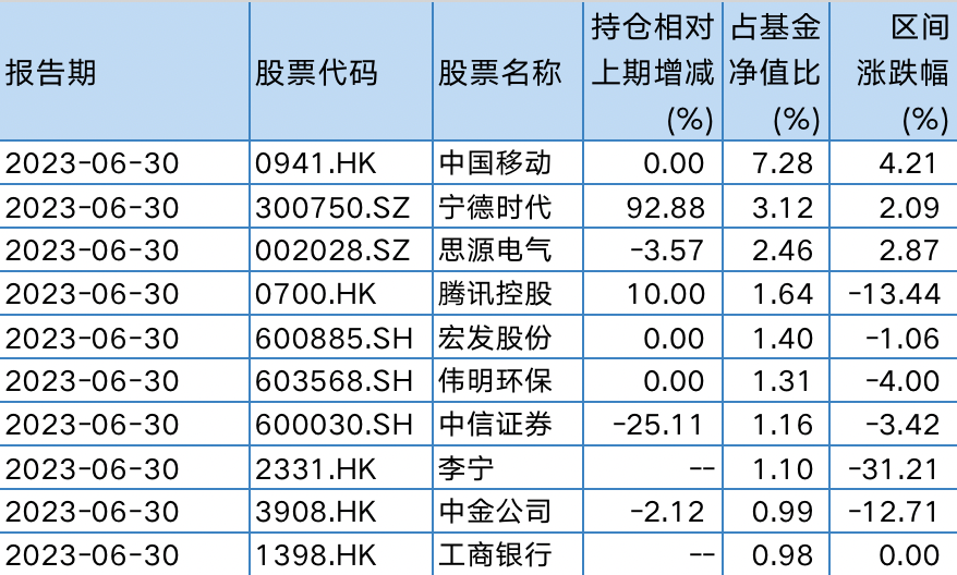 图片:睿远成长价值A2023年二季报前十大重仓股