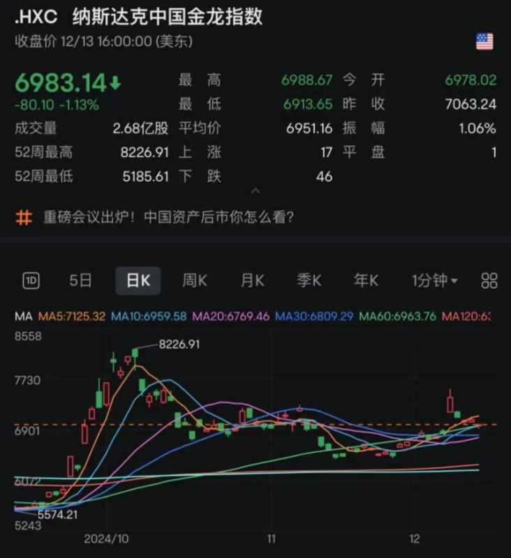 在美股市场,周五整体表现平淡,仅纳斯达克指数微涨0.12%,报收19926.72点,而道琼斯工业平均指数则连续第七天下跌,收跌0.20%,报43828.06点。标普500指数微跌,收于6051.09点。