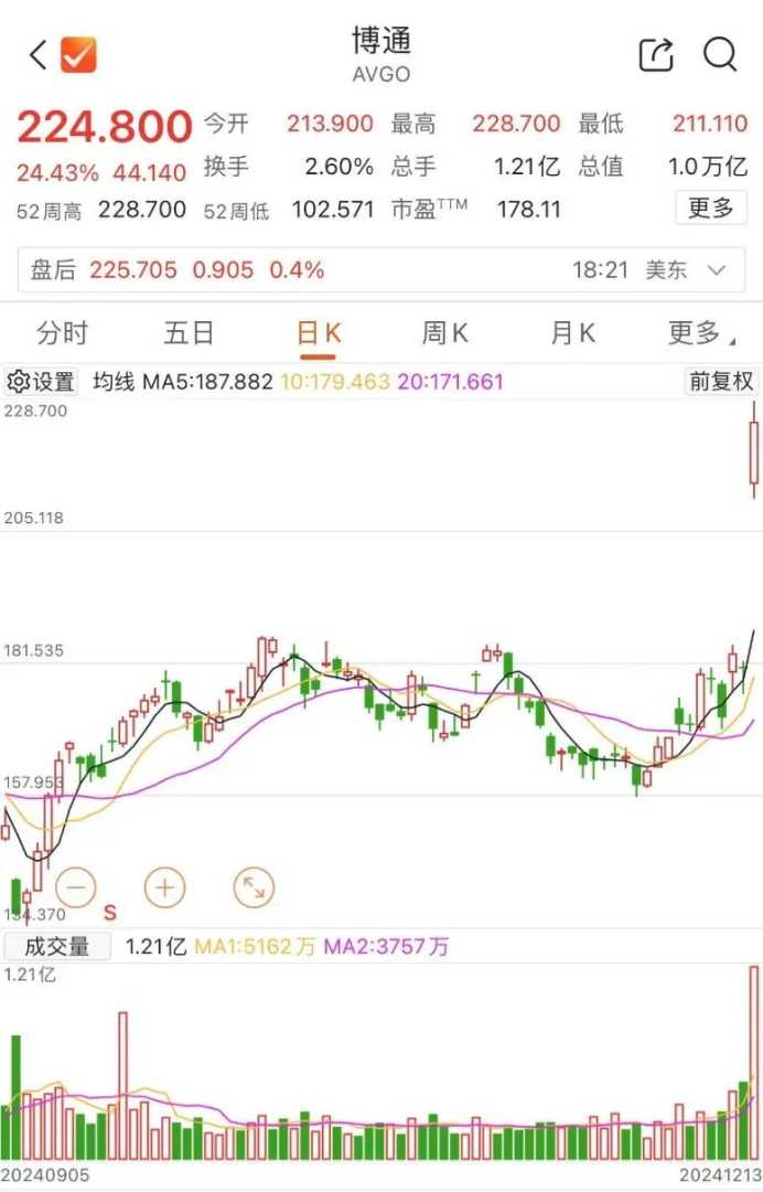 隔夜黄金价格大幅下滑,但机构看好未来走势。美股市场表现平淡,科技股表现抢眼,博通股价因AI业务收入大涨飙升逾24%,特斯拉股价续创历史新高。