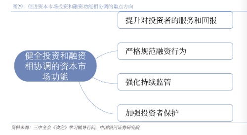 报告进一步指出,要做好以下四方面工作:一是提升对投资者的服务和回报,推动长期资金入市,促进“科技~产业~金融”良性循环;二是严格规范融资行为,严把发行上市准入关,完善发行上市制度,强化责任,规范退市标准;三是强化持续监管,优化市场监管机制,增强监管有效性;四是加强投资者权益保护,提升违法成本,健全赔偿救济机制,加强投资者教育。