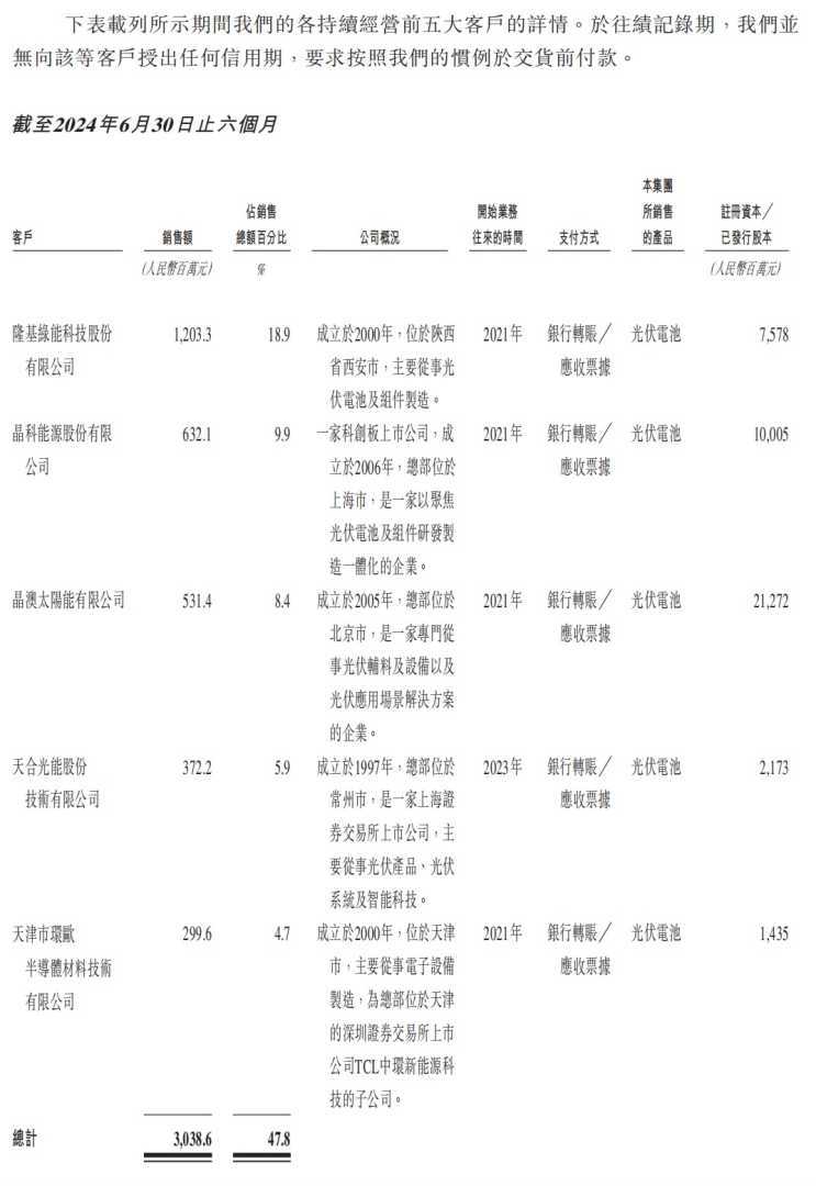 钧达新能源致力于高效光伏电池的研发、生产和销售。据弗若斯特沙利文资料显示,按2023年出货量计算,钧达新能源在N型TOPCon电池市场占有率约为16.1%,全球排名第二;光伏电池市场份额约为5.5%,全球排名第八。