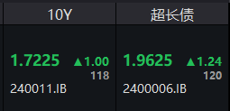 具体来看,备受市场瞩目的10年期国债品种“24附息国债11”的收益率在当日上行了1个基点(bp),最终报收于1.7225%的水平。与此同时,30年期国债品种“24特别国债06”的收益率同样出现了上升,具体为上行1.24个基点(bp),并报收于1.9625%的价位。这一变化无疑为市场参与者提供了重要的参考信息。