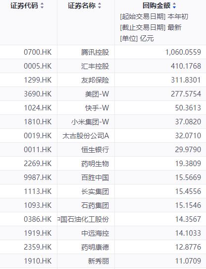 港股上市公司回购活跃,今年以来已有276只港股公司实施回购,腾讯控股、汇丰控股、友邦保险回购金额最大。