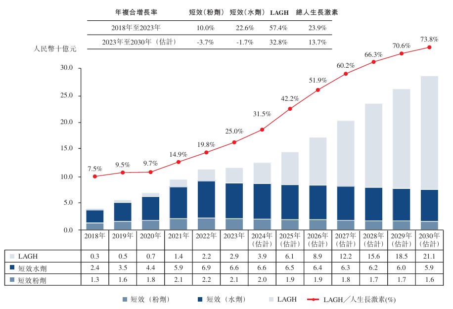 据弗若斯特沙利文数据,2023年中国人生长激素市场规模为116亿元,预计到2030年将增至286亿元,年复合增长率达13.7%。尽管中国在全球市场中占据最大份额,但生长激素药物的渗透率仍然较低。以儿童生长激素缺乏症为例,2023年中国患病人数为340万例,但治疗率仅为5.3%。