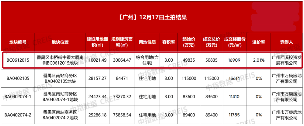 广州超高得房率地块项目近期加速入市,成为市场焦点。12月17日,广州成功出让番禺区四宗宅地,总出让面积为20.84万平方米,累计成交金额高达33.88亿元。其中,绿城集团以总价5.08亿元竞得番禺区市桥街中银大厦南侧地块,该地块由商务用地调整为二类居住用地,未来项目住宅产品最高实用率可达125%。