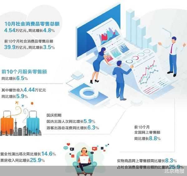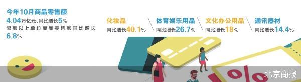 一系列新质生产力典型业态的相关产品和方案纷纷亮相,不仅为消费者带来全新体验,还激发了更多新型消费需求,引领消费赛道提质升级。今年以来,国家出台了一系列促消费政策,推动大消费市场的蓬勃发展。如3月,国务院新闻办发布的相关政策中提到,要培育壮大新型消费,顺应数字、绿色、国潮等消费新趋势,打造更多消费新增长点。8月,国务院又印发了《关于促进服务消费高质量发展意见》,进一步挖掘基础型消费潜力,激发改善型消费活力。根据国家统计局数据,今年10月商品零售额达到4.04万亿元,同比增长5%,增速较上月加快1.7个百分点。
