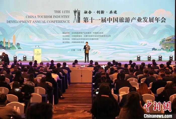 中新网大理12月17日电 (韩帅南 白玲)12月17日,备受瞩目的第十一届中国旅游产业发展年会在风景秀丽的云南大理拉开帷幕,年会主题为“融合·创新·共进”。此次盛会吸引了文旅相关部门代表、文旅企业领军人物及文旅领域的专家学者等重量级嘉宾,他们齐聚一堂,共同聚焦旅游业发展的前沿话题,旨在携手推动旅游业的高质量发展,促进文化和旅游深度融合。
