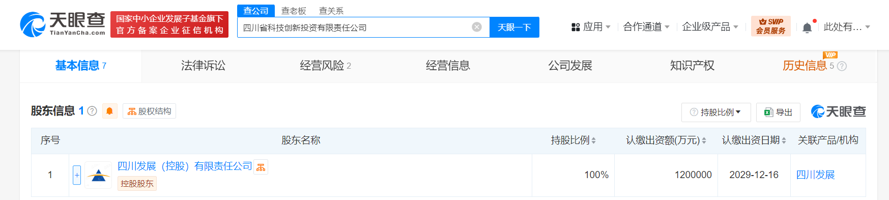 南方财经12月18日电,天眼查App最新数据显示,四川省科技创新投资有限责任公司于近日正式成立。该公司的法定代表人为陈庆红,注册资本高达120亿元人民币,其主营业务涵盖以自有资金从事投资活动以及提供企业管理咨询。据股东信息显示,该公司由四川发展(控股)有限责任公司全资控股。