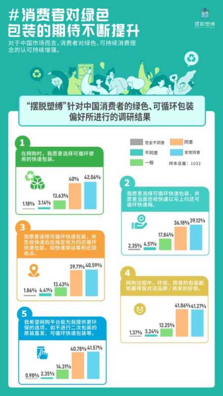 在消费端,消费者对于绿色包装的态度也日趋积极。调研结果显示,超过83%的消费者表示,环保包装能提升对品牌的好感;82%愿意选择可循环快递包装,并且79%愿意签收后将包装归还到指定地点。这表明,消费者在一定程度上愿意为绿色包装买单。
